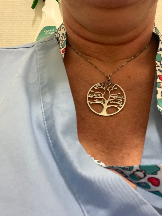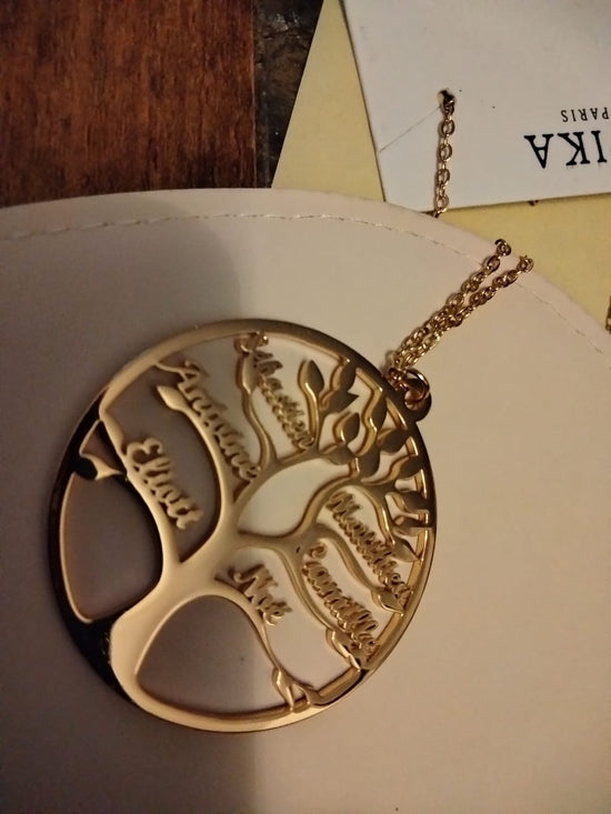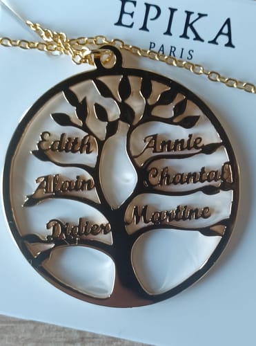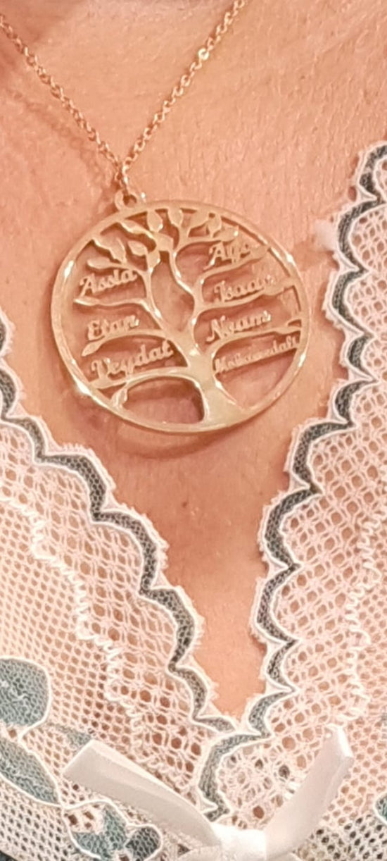 Ein unglaubliches und einzigartiges Schmuckstück! Die Idee, die Vornamen meiner Familie auf diesem Baum zu gravieren, ist genial. Es ist ein sentimentales und trendiges Geschenk!